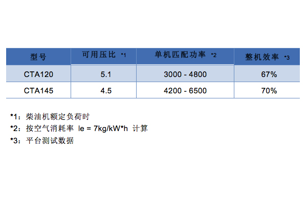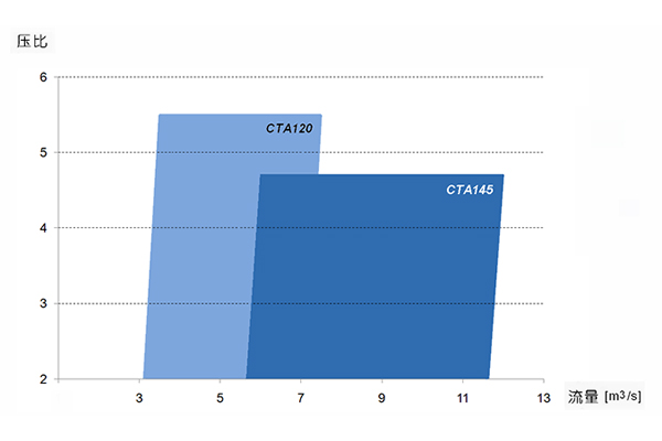 > Offering pressure ratio as high as 5.5, and turbocharging efficiencies up to 70% with wide flow range;