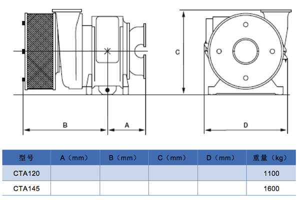 The CTA axial flow turbocharger comprises a single stage centrifugal compressor and an axial turbine with inboard film bearings. It is designed for four-stroke medium-speed and two-stroke low-speed diesel engines with a power output range from 3000 kW to 6500 kW.