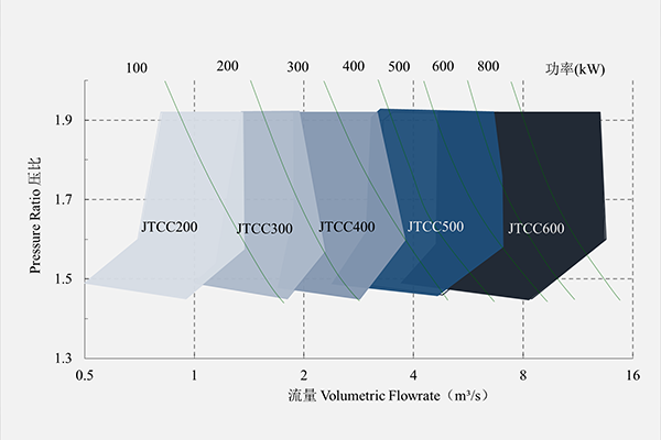 Single-stage centrifugal compressor with adjustable inlet vanes and variable diffusers. with constant discharge  pressure, the flowrate varies from 45% to 100%. It is widely used in biological waste water treatment, flue gas desulphurization, sulphur recovery unit, fermentation and other similar aeration processes.