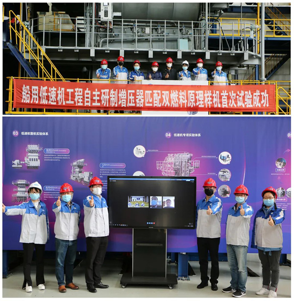 作為“船用低速機工程”中首件在原理樣機上成功進行匹配試驗的關重件,該試驗的成功為后續自主品牌增壓器的裝船應用奠定了堅實基礎,也為接下來的“船用低速機工程”其他關重件裝機試驗、關鍵技術驗證試驗開了好頭。