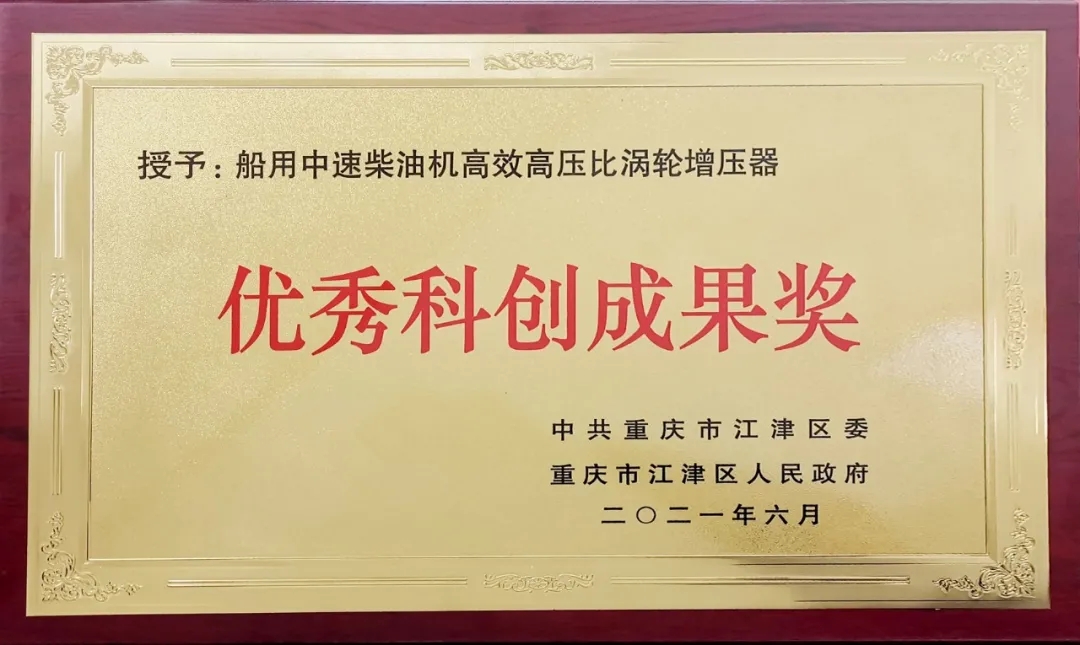 【科創成果】“船用中速柴油機高效高壓比渦輪增壓器”獲得江津區優秀科創成果獎