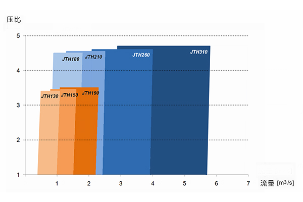 > 最高壓比超過 4.7,流量范圍寬廣,整機效率67%;